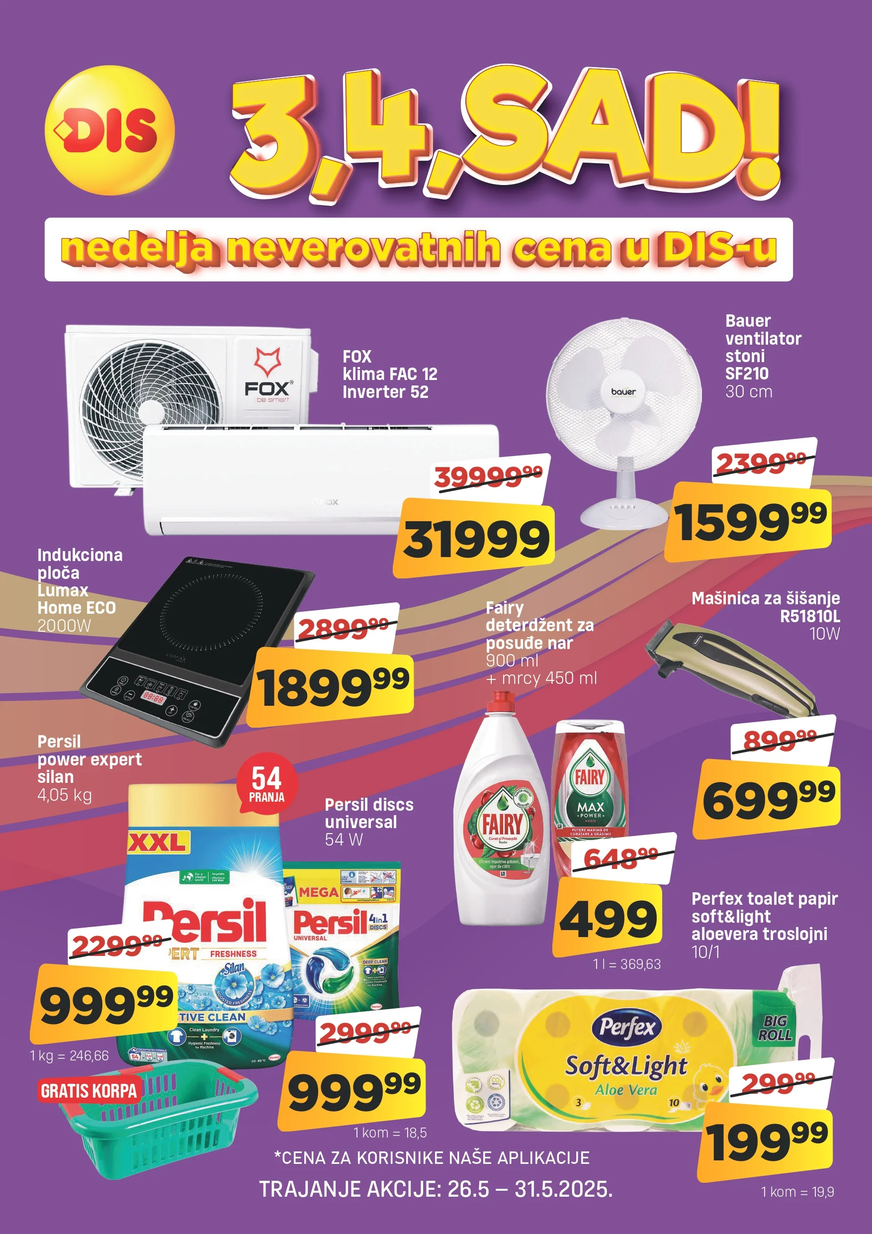 Ne propustite super akciju u Dis prodavnicama! Očekuju vas sjajne cene na tehniku, sredstva za čišćenje i još mnogo toga. Kupujte pametno i uštedite uz vrhunske ponude. Požurite, ponuda traje ograničeno!