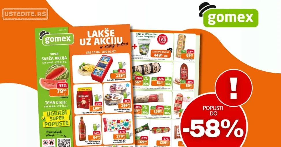 Stigao je novi Gomex katalog sa popustima do čak 58%! Uživajte u sjajnoj ponudi prehrambenih proizvoda po cenama koje će vas obradovati. Pored toga, tu su i mnoge druge odlične ponude koje ne smete propustiti.