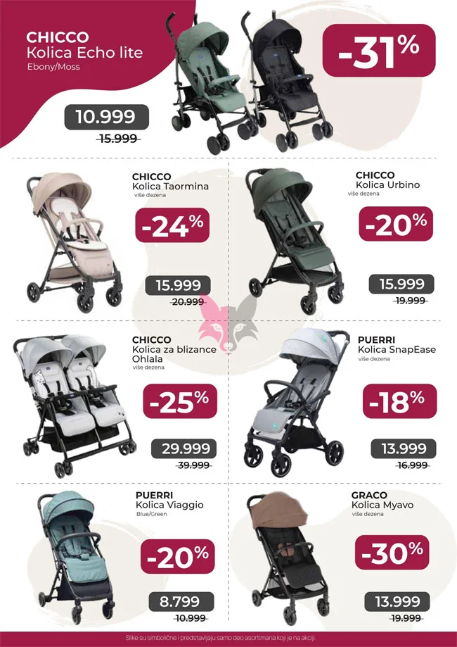 Za bezbrižne šetnje i svaki izlazak sa mališanima, Aksa katalog kolica i oprema za bebe donosi sve što vam je potrebno! U ponudi vas čekaju kvalitetna kolica, torbe, dodatna oprema i praktični aksesoari koji olakšavaju svakodnevicu roditelja. Pronađite modele za svaki stil i potrebu, uz pouzdanost i udobnost za vaše mališane. Iskoristite sniženja do 40% i opremite se pametno uz odlične cene!