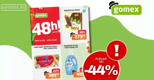 Prelistajte novi Gomex katalog i iskoristite popuste do 55%!U ponudi vas očekuje bogat izbor svežeg voća i povrća, prehrambenih proizvoda, mlečnih delikatesa, mesnih prerađevina, hemije i kozmetike, kao…